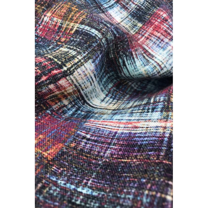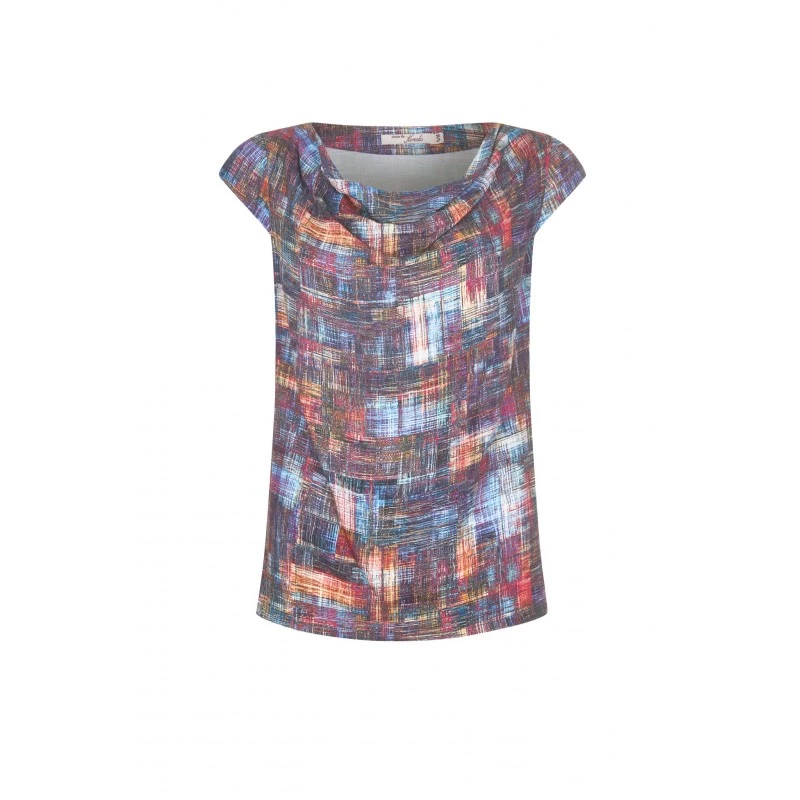 Top Sens Line : manches courtes, col drapé, et un joli imprimé « entre les lignes ».